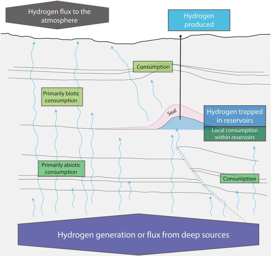 - Потери при миграции. Водород — очень легкий газ, и он способен просачиваться сквозь горные породы. Часть водорода может теряться на пути к поверхности, подвергаясь химическим реакциям и утилизации микроорганизмами.