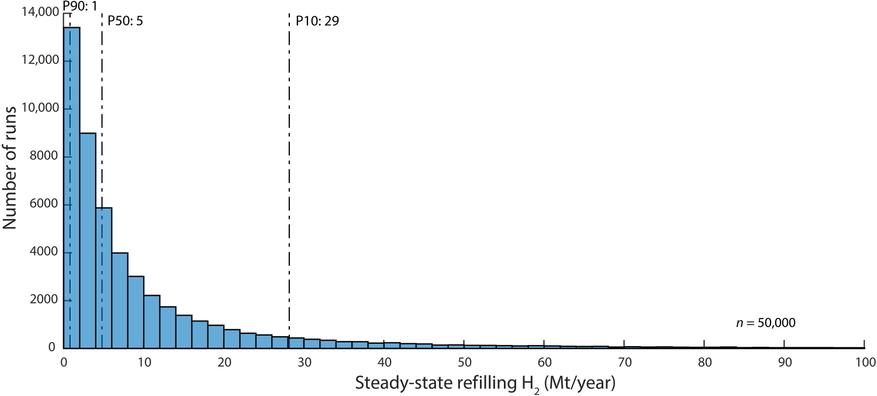 Недавние исследования, основанные на геологических моделях и аналогиях с известными месторождениями нефти и газа, дают впечатляющие результаты. По самым осторожным оценкам, запасы природного водорода в земной коре составляют от 10³ до 10¹⁰ тонн. Если эти цифры верны, то даже небольшая часть этого водорода (порядка 10⁵ тонн) могла бы обеспечить потребности человечества в чистой энергии в течение 200 лет.