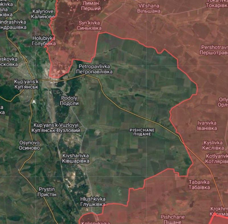 Южнее мы движемся на СЕВЕРСК, продвижение составило до километра. Противника оттеснили до центра ВЕРХНЕКАМЕНСКОГО, подбив две единицы вражеской бронетехники.
