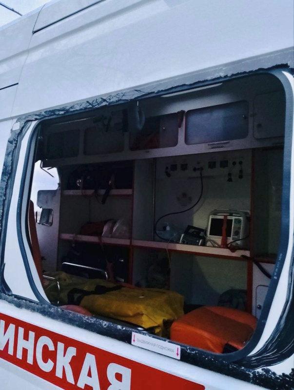 Отмечается, что машину скорой помощи зацепило одним из сброшенных снарядов. При этом работники серьезных травм не получили.