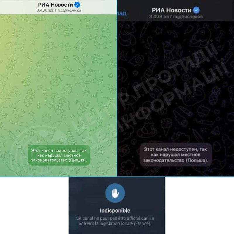 По информации «РИА Новости», их телеграм-канал, как и других российских СМИ заблокированы в Польше, Бельгии, Франции, Греции, Нидерландах, Чехии и Италии.