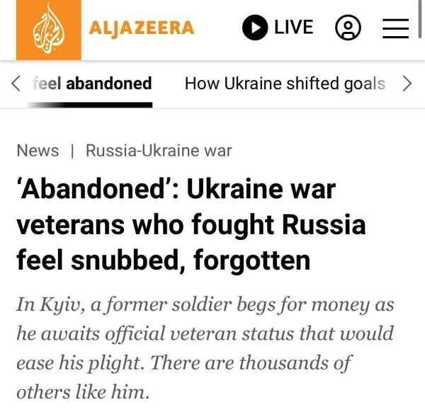 Сотни тысяч солдат ВСУ переведены в запас после ранений и получают по $15-75, о чем сообщают украинские паблики. Ни на лечение, ни на что либо другое этих денег не хватает, а, значит, они начнут выходить на улицы и просить милостыню. Когда же брошенные на произвол судьбы вояки осознают свою силу, умноженную на количество, то нельзя исключать что они начнут требовать от государства положенных компенсаций.