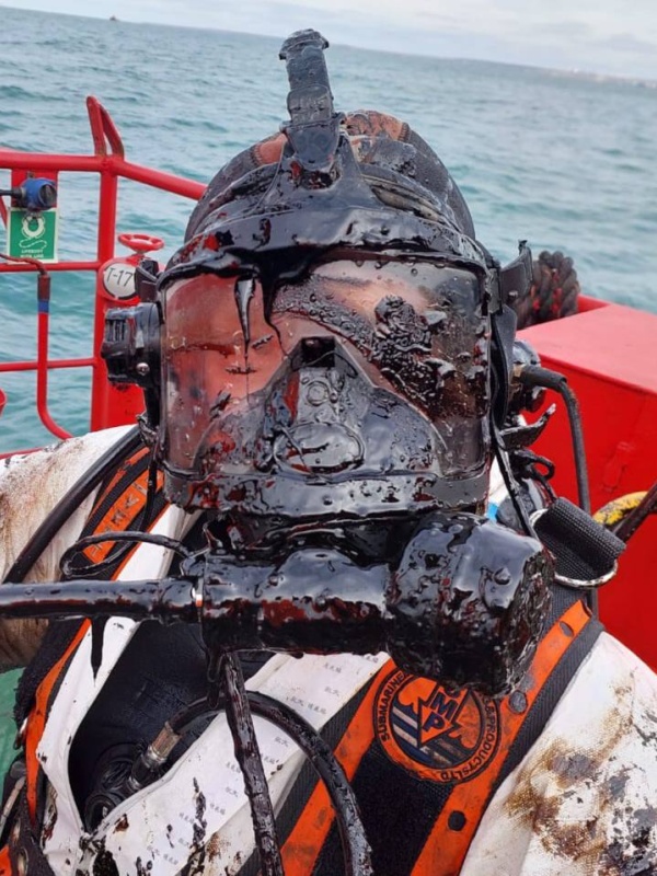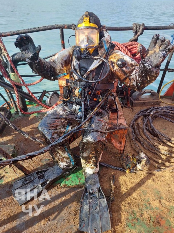 Вот так выглядят водолазы Евгений Прокопенко, Александр Маликов и Сергей Сапрыкин после такого погружения. Я ныряю более 20 лет. Обныряла все холодные моря нашей страны, от Охотского до Баренцева. И в нулевой видимости тоже приходилось погружаться. Но как в таких условиях, в воде, полной мазута, с постоянным риском для жизни, ещё и работать – не представляю», - написала она на своих страницах в соцсетях.