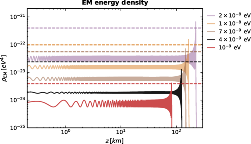 А теперь давайте посмотрим на Землю. На высоте 60-1000 км над поверхностью расположена ионосфера, слой ионизированного газа с переменной плотностью электронов. В этом слое есть участки, где частота плазмы может соответствовать массам гипотетических частиц темной материи. Если это так, то частицы тёмной материи могут превращаться в радиоволны, которые, к счастью, мы можем уловить.