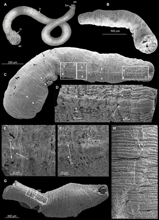 Ключевым объектом исследования стала так называемая вентральная нервная цепочка — своего рода «спинной мозг» многих беспозвоночных. Но вот вопрос: у одних эта цепочка одинарная, как струна, а у других — парная, словно две нити, сплетенные вместе. Какая из этих конструкций была изначальной? Ответить на этот вопрос помогли древние Scalidophora — группа, включающая приапулид, лорицифер и киноринхов.