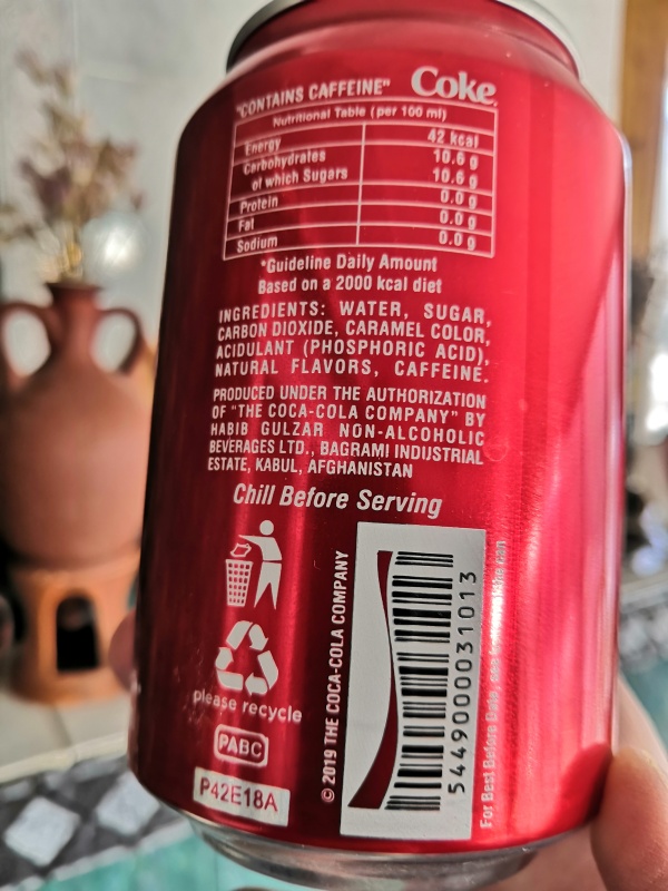 Фирменная 300-мл жестянка афганской Coca-Cola стоит в крымской рознице 65 рублей. Очень недорого, на уровне самого скромного пива. Симпатичная толстенькая баночка, сделанная симпатичными бородатыми людьми.