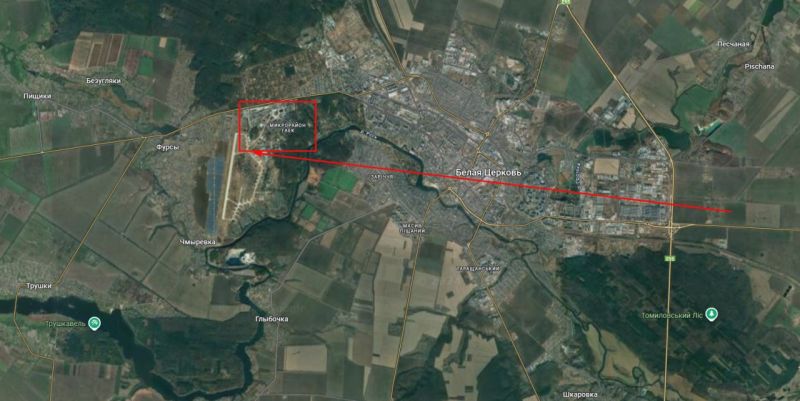В Городе Белая Церковь (Киевская область) прилёт в направлении аэродрома. Самолётов там вроде не видели, но склады хорошие, место закрытое и охраняемое. Подробностей нет. Есть интересное: после прилёта, «скорые» несутся в сторону аэродрома, движение на некоторых улицах перекрыто. Район «Гайок» оцеплен, поговаривают, что оцепление СБУшное.