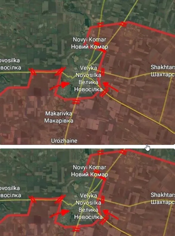 ВЕЛИКАЯ НОВОСЁЛКА на ЮЖНО-ДОНЕЦКОМ НАПРАВЛЕНИИ в оперативном окружении. Дальше для ВСУ вариантов немного: либо откатиться, пока есть такая возможность, либо погибнуть, пишет Военная хроника.