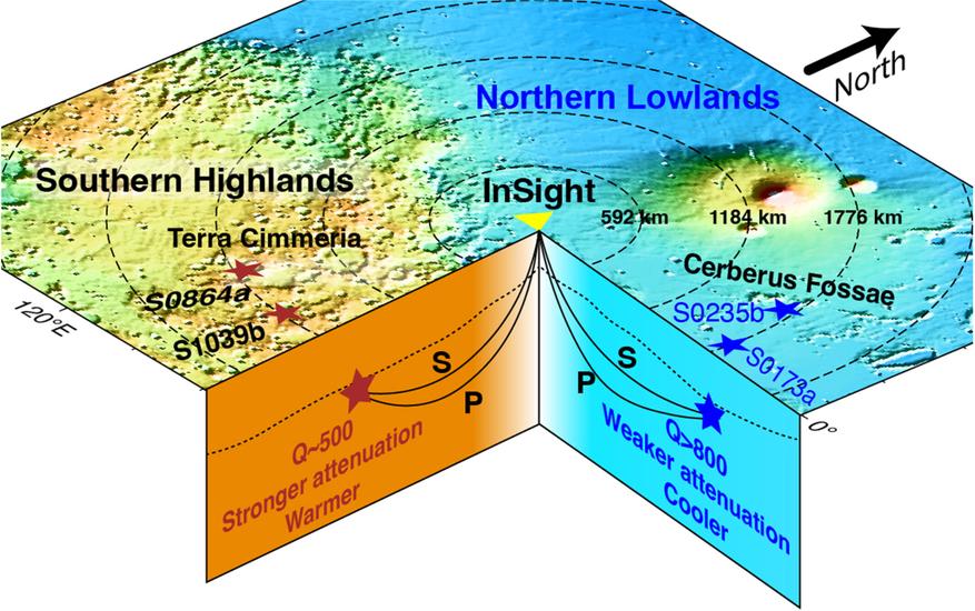 В районе Терра Киммерия в южном полушарии качество волн оказалось ниже, чем в районе Цербера Фосса на севере. Говоря проще, волны ослабевали сильнее на юге, чем на севере. А это уже весьма важная подсказка!
