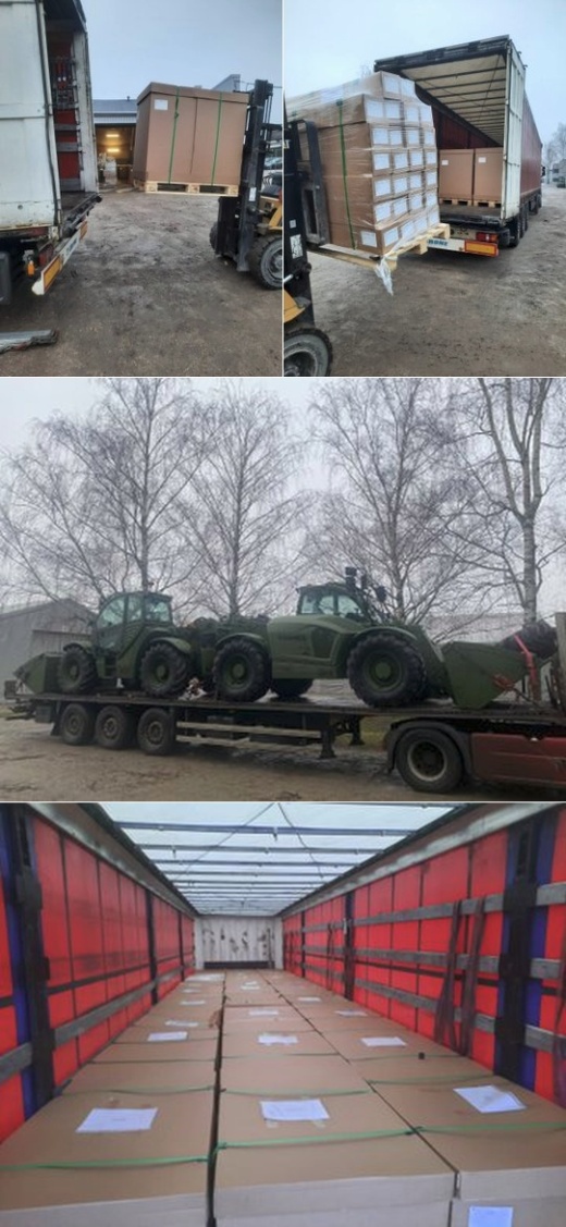 Согласно информации пресс-службы министерства обороны Литвы, на Украину прибыли литовские военные грузовики, беспилотники литовского производства, тепловые камеры и пятитонные телескопические погрузчики.