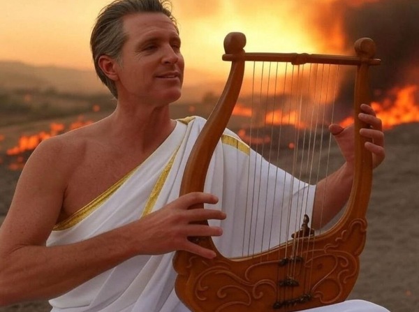 Гэвин Ньюсом в новых американских мемах в облике Нерона