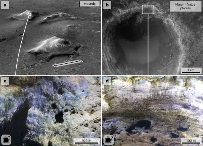 Итак, в чём же дело? Учёные обнаружили, что многие из этих холмов, чья высота порой достигает впечатляющих 500 метров, содержат слои глинистых минералов. А это, как вы понимаете, не просто так. Глина, как известно, образуется при длительном контакте горных пород с жидкой водой. Представьте себе: миллиарды лет назад по поверхности Марса текли реки, существовали озёра, а может, и целое море! И именно тогда, в эпоху, когда северные низменности планеты были, возможно, затоплены, и формировались эти глинистые отложения.