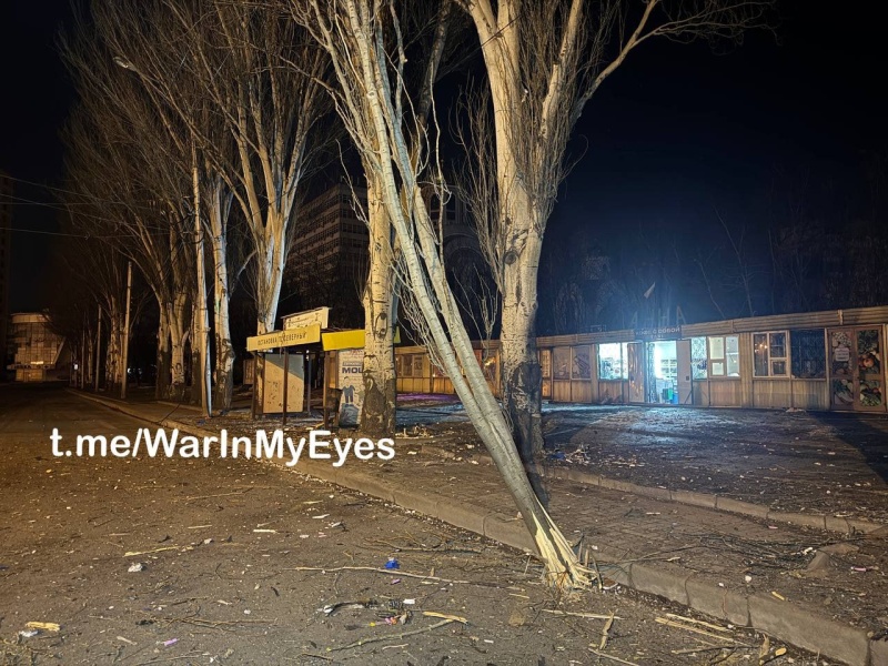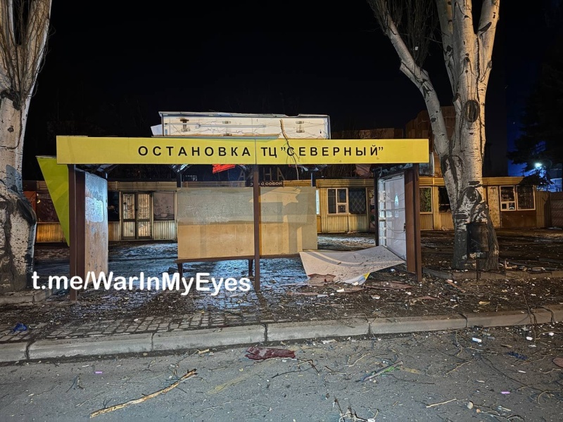 Глава городского округа Донецк Алексей Кулемзин сообщил, что жилой дом, остановка общественного транспорта и торговые павильоны повреждены в городе в результате атаки украинских беспилотников этой ночью.
