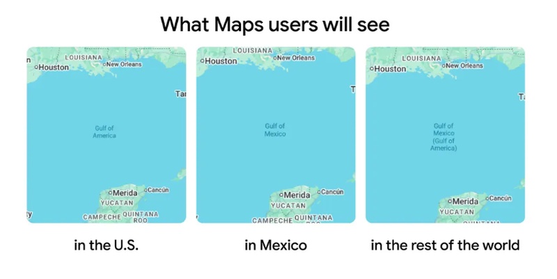 «Люди, использующие карты в США, увидят «Американский», а люди в Мексике — «Мексиканский залив». Все остальные увидят оба названия», — говорится в заявлении компании.