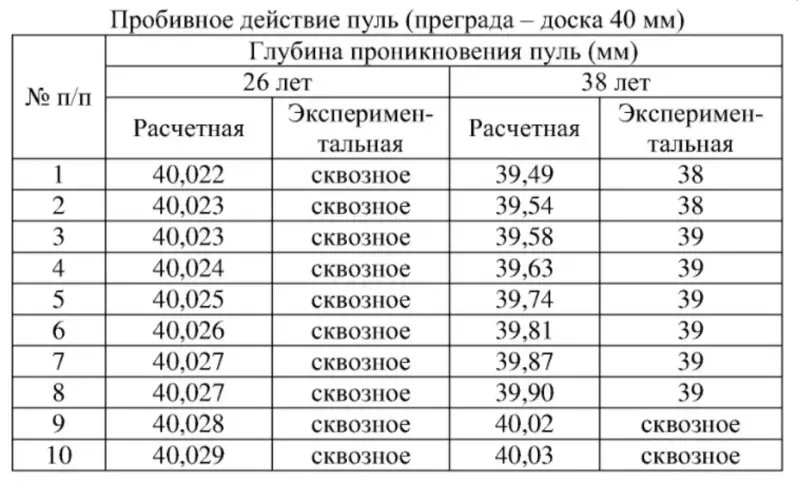При стрельбе 26-летними патронами из 10 попаданий по доске было 10 сквозных пробитий, то есть результат удовлетворительный. А вот с более древними 38-летними патронами он оказался не особо воодушевляющим: из 10 попаданий по доске только два увенчались успехом — 8 пуль её просто не пробили.