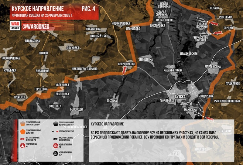 Что же касается ситуации в Курской области, то в последние дни основные события происходят в северной части оккупированной Киевом территории.