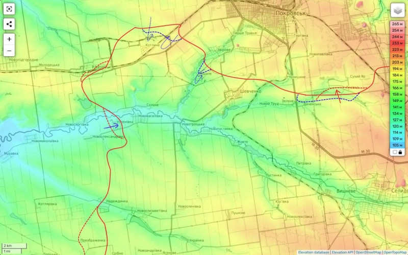 Между тем, на другом фланге Красноармейского направления наши войска продвинулись, потеснив ВСУ из нескольких «карманов» с опорными пунктами, заняв лесополосы к северу от Успеновки, между Надеждинкой и Серебряным, а также восточнее Надеждинки.