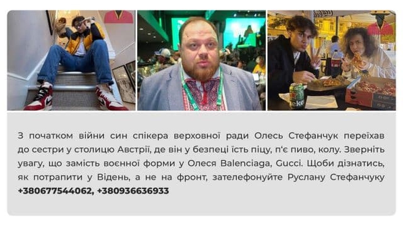 В СМИ писали, что в начале войны молодой человек выехал к сестре в Австрию и путешествовал по другим странам Европы. Как 19-летний парень смог выехать за границу – остается загадкой, поскольку обучение в университете освобождает его от мобилизации, но не дает право пересекать границу Украины. Он не инвалид, не имеет родителей-инвалидов, а также не женат на женщине с тремя детьми – это бы давало ему право выехать из страны. Одет он в одежду брендов Balenciaga и Gucci вместо формы ВСУ.
