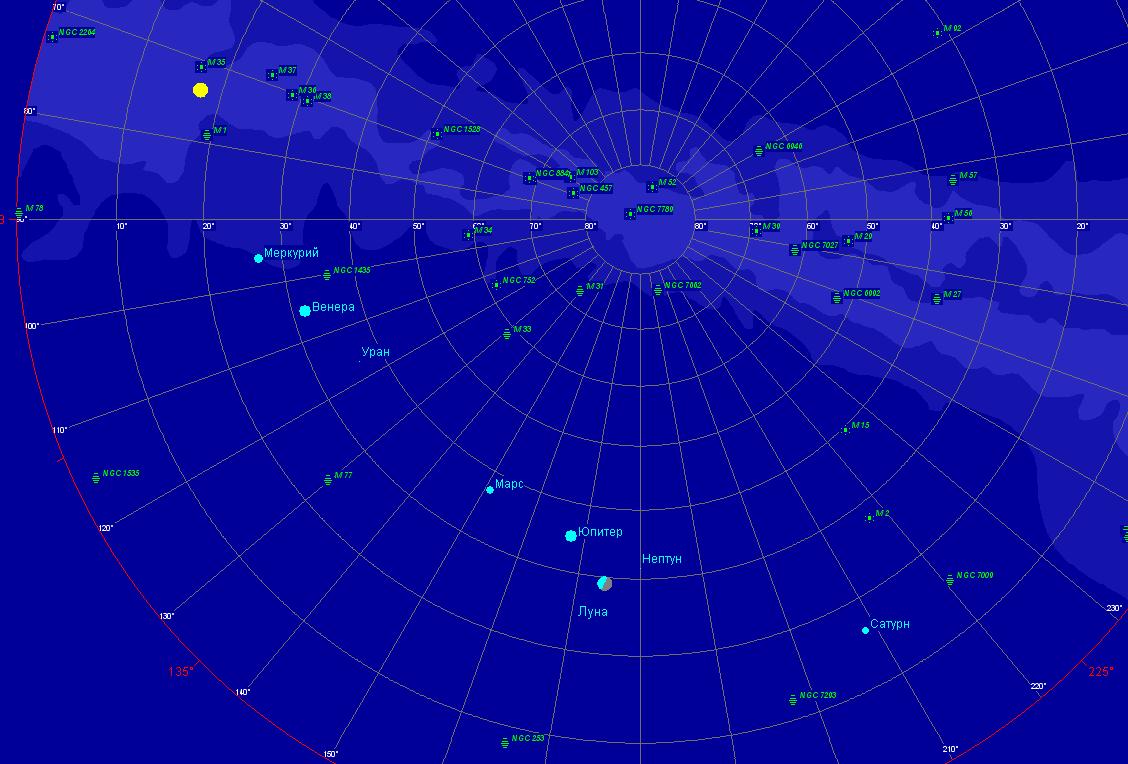 В этом месяце у нас — настоящий аншлаг! Целых семь планет решили «выйти в свет». Самые яркие и заметные — Венера, Марс и Юпитер. Их вы точно не пропустите! Марс, кстати, будет выделяться своим красновато-оранжевым оттенком — настоящий рубин среди жемчужин.