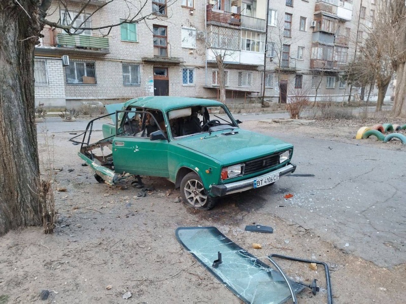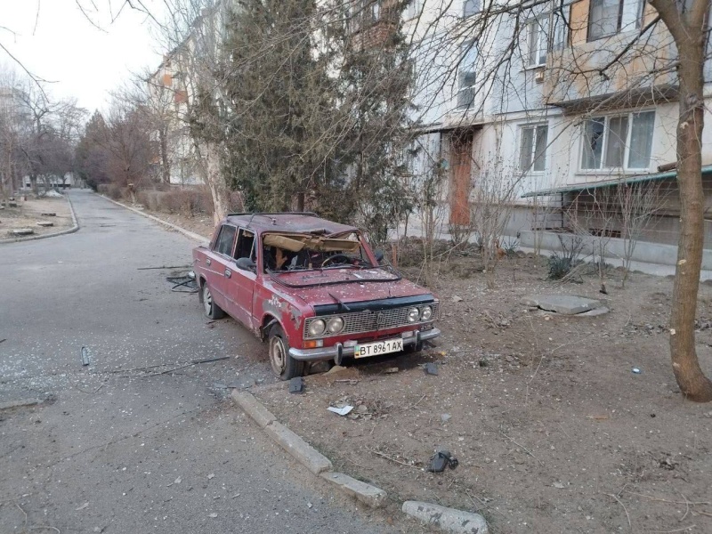 Днем противник обстрелял Новую Каховку, в результате чего был повреждён многоквартирный дом и четыре легковых автомобиля.