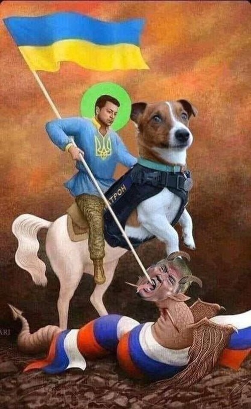 В своих проклятиях они заменили слово «Россия» на «Америка», а на пэрэможных картинках вместо головы президента России Путина присобачили голову президента США Трампа.