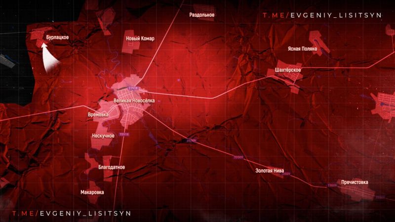 На ВЕЛИКОНОВОСЁЛКОВСКОМ НАПРАВЛЕНИИ после освобождения Бурлацкого наши парни продвинулись почти на пять километров на север к ВЕСЁЛОМУ. Также атакуют от РАЗДОЛЬНОГО к ОТРАДНОМУ.