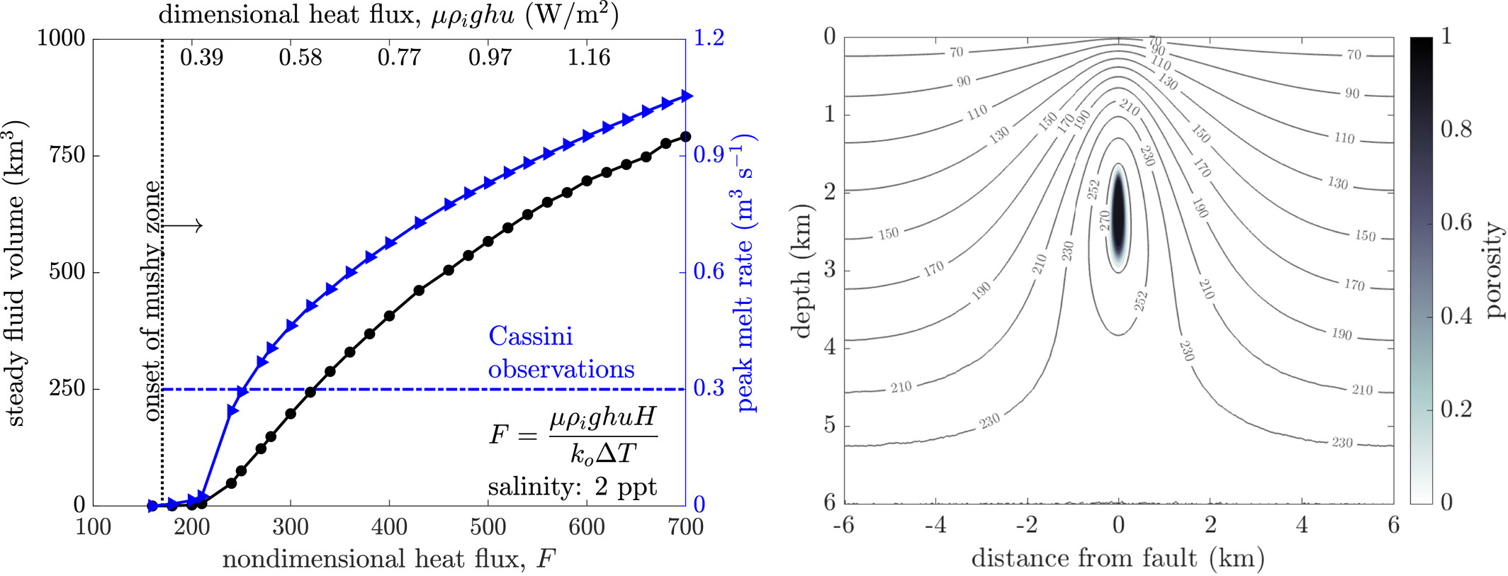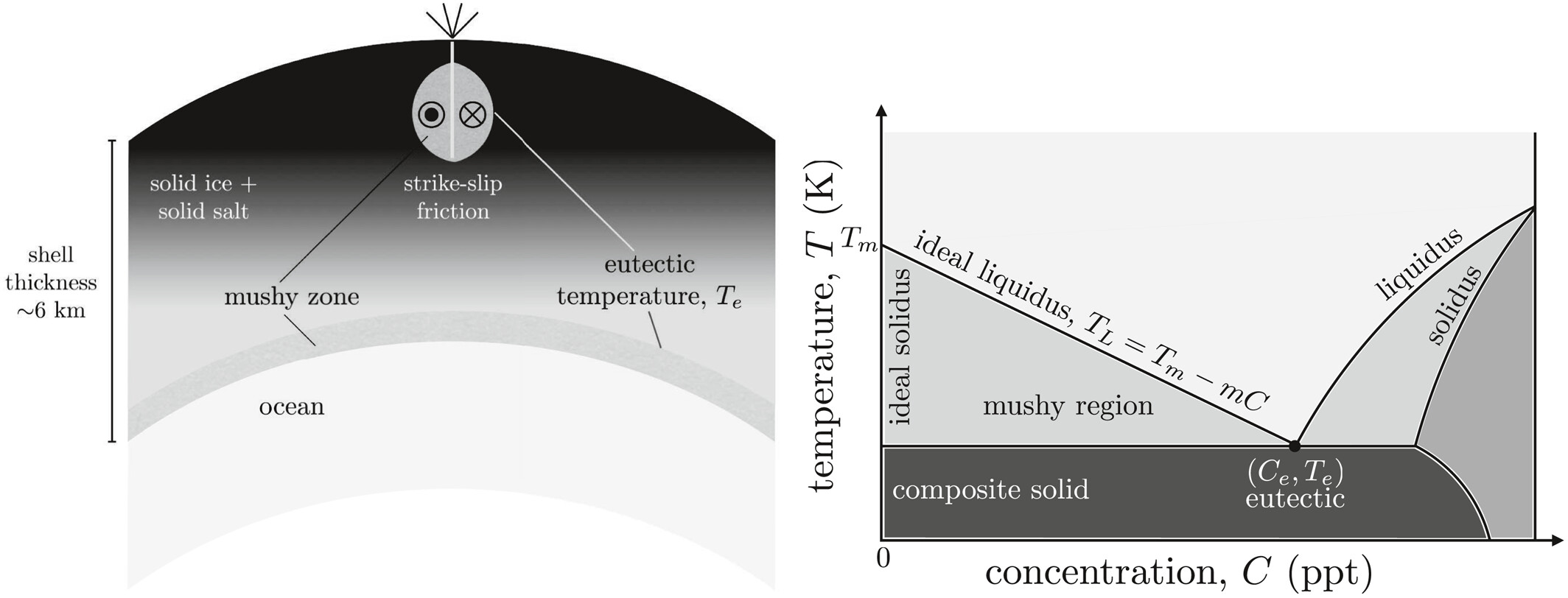 Вместо гипотезы о глубоко залегающем океане, связанном с поверхностью прямыми трещинами, ученые выдвигают идею о существовании «кашеобразной зоны» — области частично растаявшего льда и соленой воды, расположенной непосредственно под знаменитыми «тигровыми полосами» в районе южного полюса спутника. Эти «тигровые полосы» — своеобразные трещины, пронизывающие ледяную кору, и именно из них вырываются в космос впечатляющие шлейфы водяного пара.