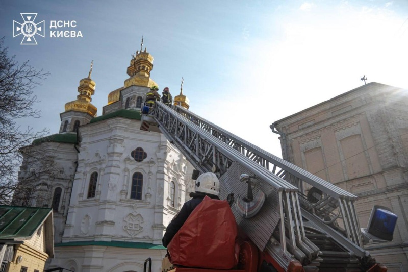 В субботу, 8 марта, в Киеве упал крест с купола церкви Всех Святых Киево-Печерской Лавры, в результате чего его демонтировали спасатели.
