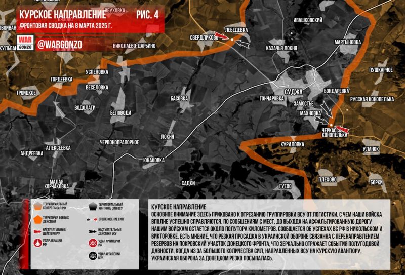 Операция по освобождению Суджи началась. Но началась не сегодня и не вчера. Сейчас мы видим её финальную фазу. Да, ВСУ готовят несколько бригад на прорыв, но будет ли это прорыв на территорию Украины или самоубийственная попытка восстановить логистику – пока неясно. Войска РФ наступают на нескольких участках – это тоже правда, но и противник оттуда пока не бежит, а держит позиции. ВСУ отзеркалили своё положение полугодичной давности, когда перекинули сюда большое количество резервов, ослабив свою оборону на Донецком фронте. Но тем не менее они до сих пор проводят ротации в Курской области.