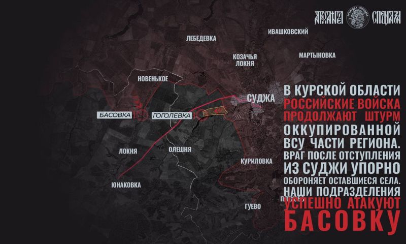 ВСУ не пытаются контратаковать, просто наносят огневые удары по нашим позициям, не давая наступать на оставшиеся территории под контролем врага. Причём отмечается даже применение кассетных боеприпасов по СУДЖЕ и окрестностям.