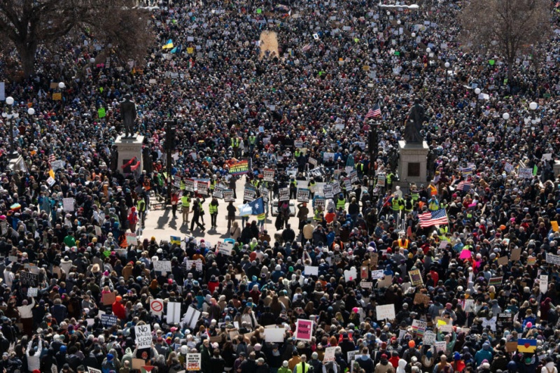Тем временем, на улицах американских городов во всех 50 штатах проходят протесты против политики Трампа под девизом «Руки прочь от нашей демократии».