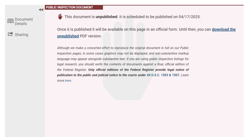 Об этом говорится в указе, который был размещен на сайте Федерального реестра США.