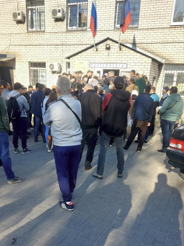 В Донецкой Народной Республике сложилась ситуация, когда в Республиканский наркологический центр вынуждены обращаться за сертификатом не только дончане, но и жители со всех городов и различных населённых пунктов ДНР. Из-за этого образуются огромные очереди, усугублённые тем, что туда организованно свозят мигрантов из стран Средней Азии.