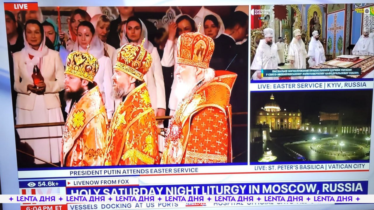 В публикации также отмечается, что Fox News транслировал службу из храма Христа Спасителя в Москве около 30 минут.