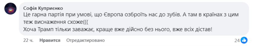 Впрочем, они находят у него на родине душевный отклик. Подписчики разделили явное торжествующее удовлетворение Демчука, что Трампу не удается установить мир на Украине.