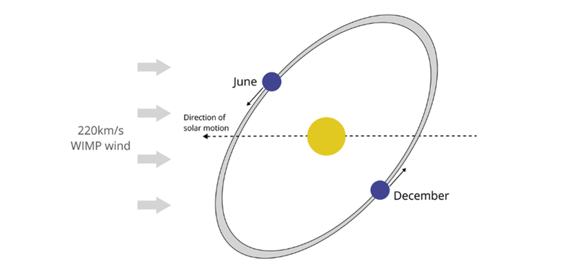 А почему именно Южное полушарие? Тут дело вот в чём. Существует давний и довольно известный эксперимент DAMA/LIBRA, расположенный в Италии (Северное полушарие). Уже много лет эта коллаборация заявляет о регистрации сигнала, который странным образом меняется в течение года — достигая пика летом и минимума зимой. Одна из гипотез связывает это с движением Земли сквозь гипотетическое «гало» тёмной материи, окутывающее нашу галактику. Летом Земля движется «по направлению» этого потока, зимой — «против».