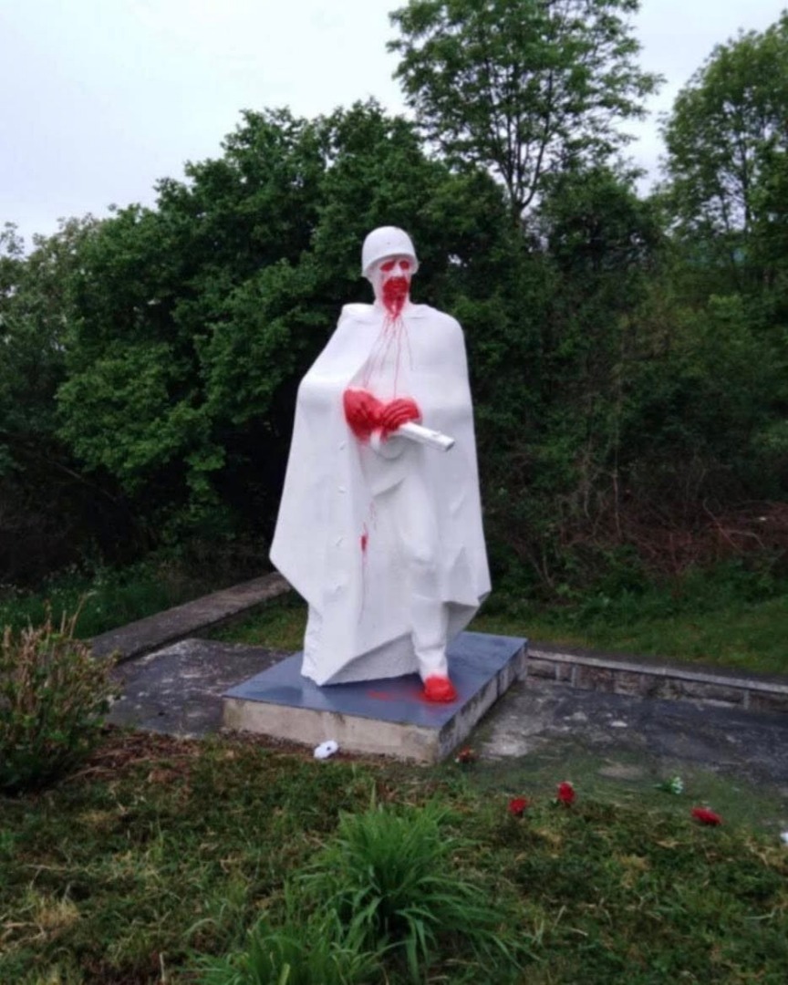 Шутай-Эшток опубликовал фотографии, которые зафиксировали, что памятник, установленный в честь солдат Красной армии, измазан красной краской, а рядом нанесена оскорбительная надпись.