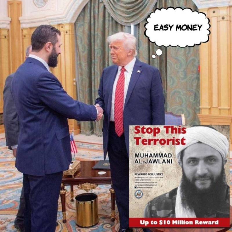«Трамп вышел со встречи с объявленным в розыск президентом Сирии на 10 млн богаче», — иронизируют соцсети.