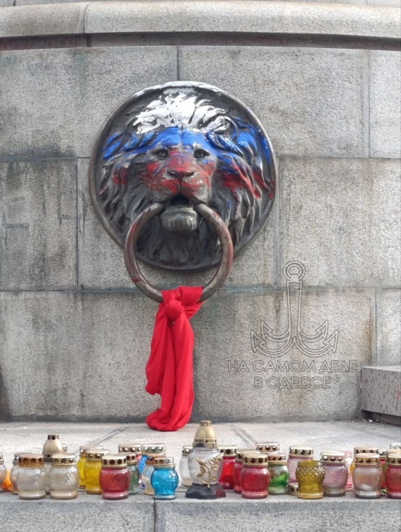 «В Одессе на постаменте где раньше был памятник Екатерине II, на одном из львов появился нарисованный красками флаг России. Находясь в оккупации «киевского режима» Одесса помнит, что она русский город», - отметил телеграм-канал «На самом деле в Одессе».