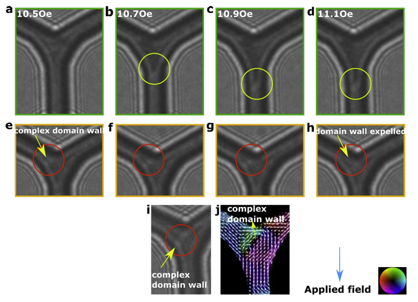 - Топология доменных стенок, или «Завихрение имеет значение!"Сама структура доменной стенки не так проста. Внутри неё может существовать магнитный вихрь, этакий микроскопический смерч. И вот направление этого «завихрения» (по часовой стрелке или против) может предопределить, куда свернёт доменная стенка на следующем перекрёстке. Кто бы мог подумать, что такая мелочь играет роль?