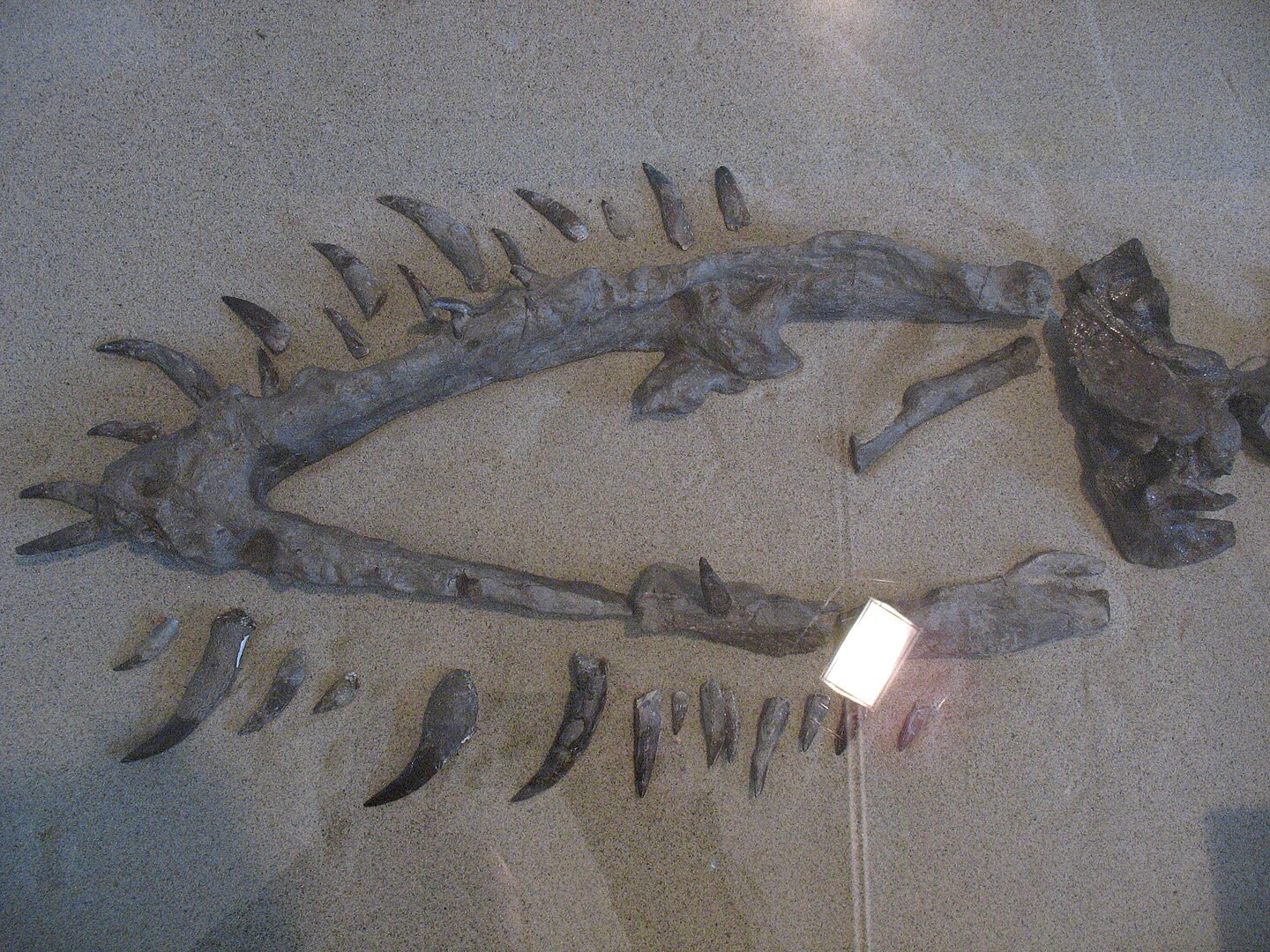 Представьте себе создание длиной около 12 метров, с характерной для эласмозавров длиннющей шеей (по подсчетам, в ней было не менее 50 позвонков, а то и больше!). Но вот зубы у него были особенные: мощные, острые и крепкие. Не просто для удержания скользкой рыбы, а, скорее всего, для дробления чего-то более твердого.
