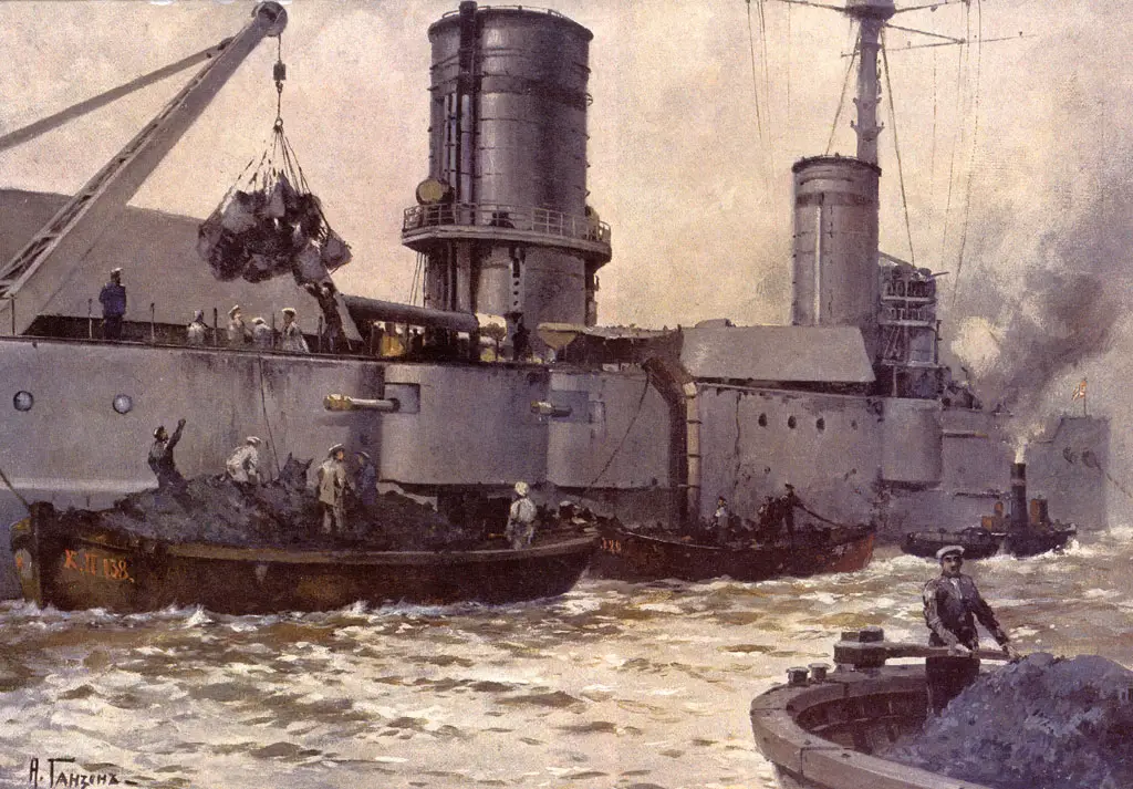 Это сильно осложнило жизнь экипажа, и так страдавшего от тропической жары. Сама погрузка при океанском волнении и сильной жаре была сложным делом, отнимала у экипажей уйму времени (в среднем броненосцы принимали по 40-60 тонн угля в час). Люди, изнуренные тяжелой и грязной работой, не могли нормально отдохнуть. К тому же все помещения были завалены углем, и заниматься боевой подготовкой было нельзя.