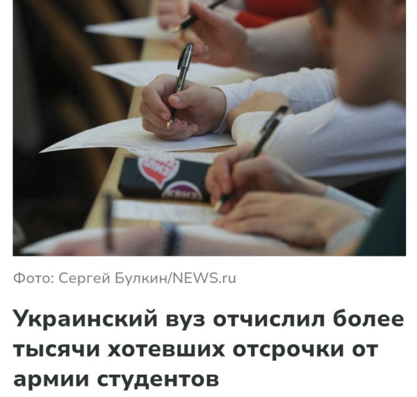 «Цена «брони» растёт: в колледжах Харьковской области обучение теперь стоит до 50 тысяч гривен в год, а вузы могут лишиться 20% бюджетных мест. Власти также рассматривают отмену отсрочек для студентов старше 25 лет - это прямое подтверждение кадрового коллапса ВСУ и тотального разграбления госбюджета», - отмечает телеграм-канал «Первый Харьковский».