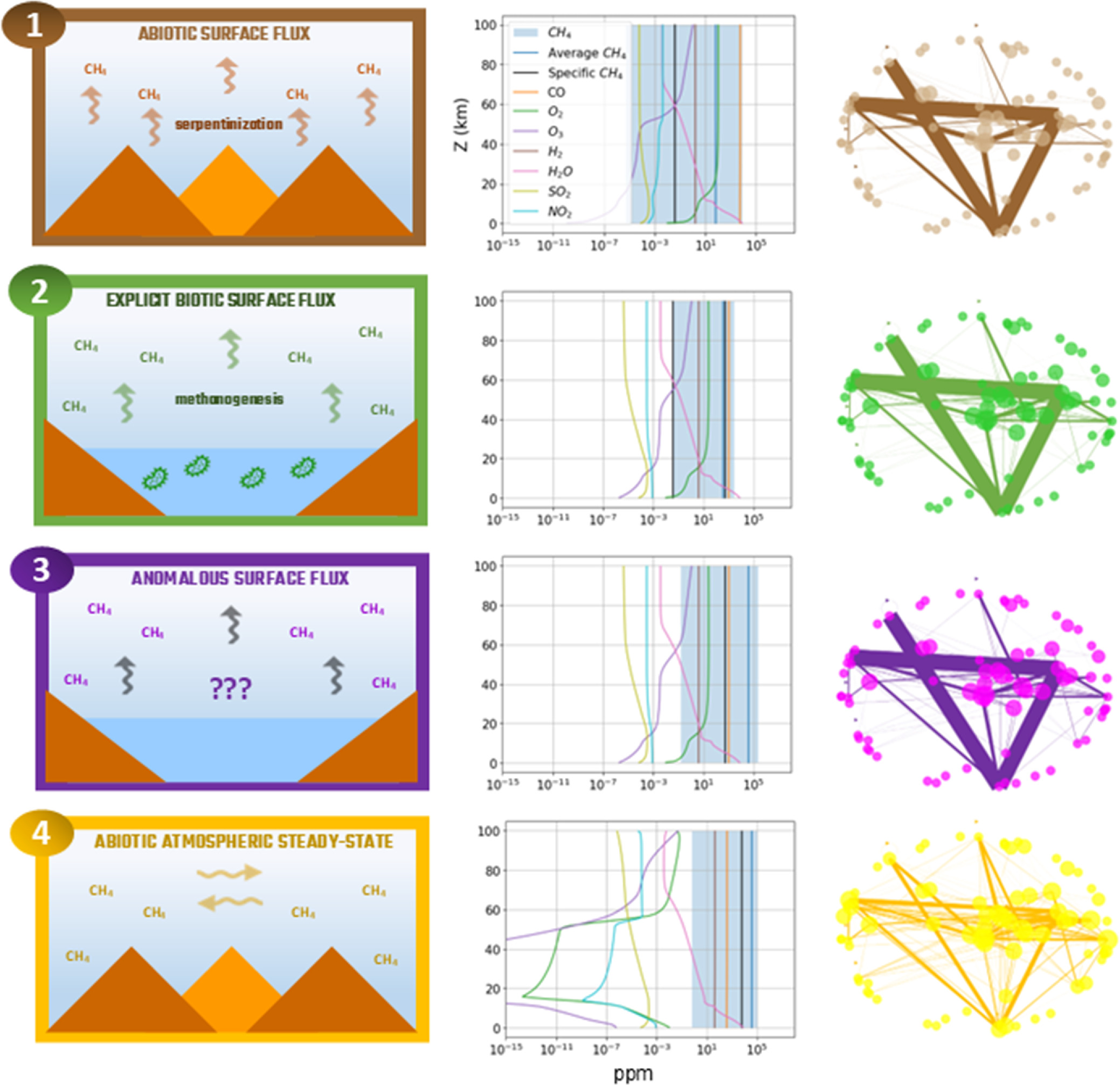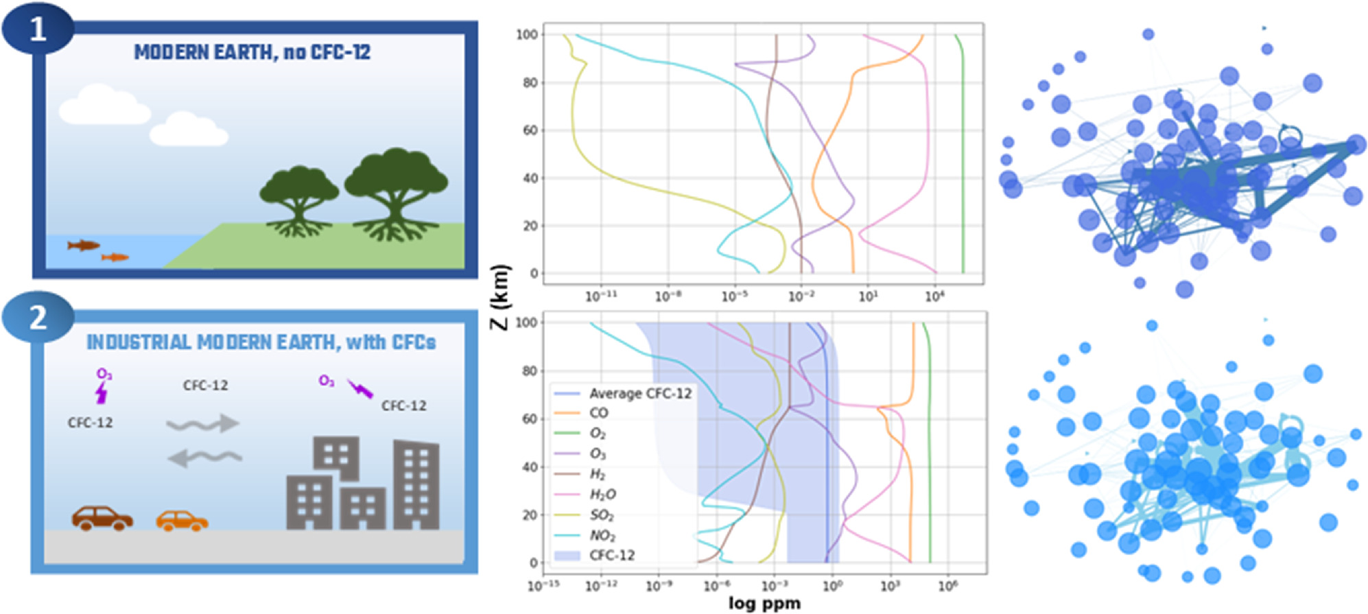 Исследователи проанализировали сетевые свойства этих смоделированных атмосфер. И вот что интересно: оказалось, что сетевой анализ способен различать атмосферы с биологическими источниками газов, абиотическими (небиологическими) и даже аномальными, происхождение которых неясно. Например, он может помочь отличить метан, произведенный микробами, от метана геологического происхождения. Более того, этот подход позволил четко отделить атмосферы с CFC-12 от тех, где его не было, что важно для поиска техносигнатур.