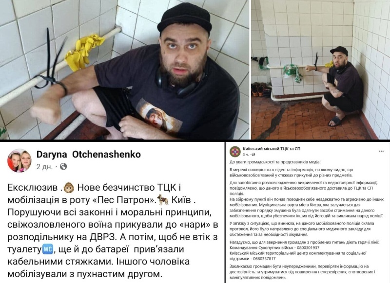 Ранее в соцсетях уже появлялись фото и видео из ТЦК на ДВРЗ. В частности, фото прикованного мужчины в туалете, которого сотрудники ТЦК якобы «приводили в чувство».