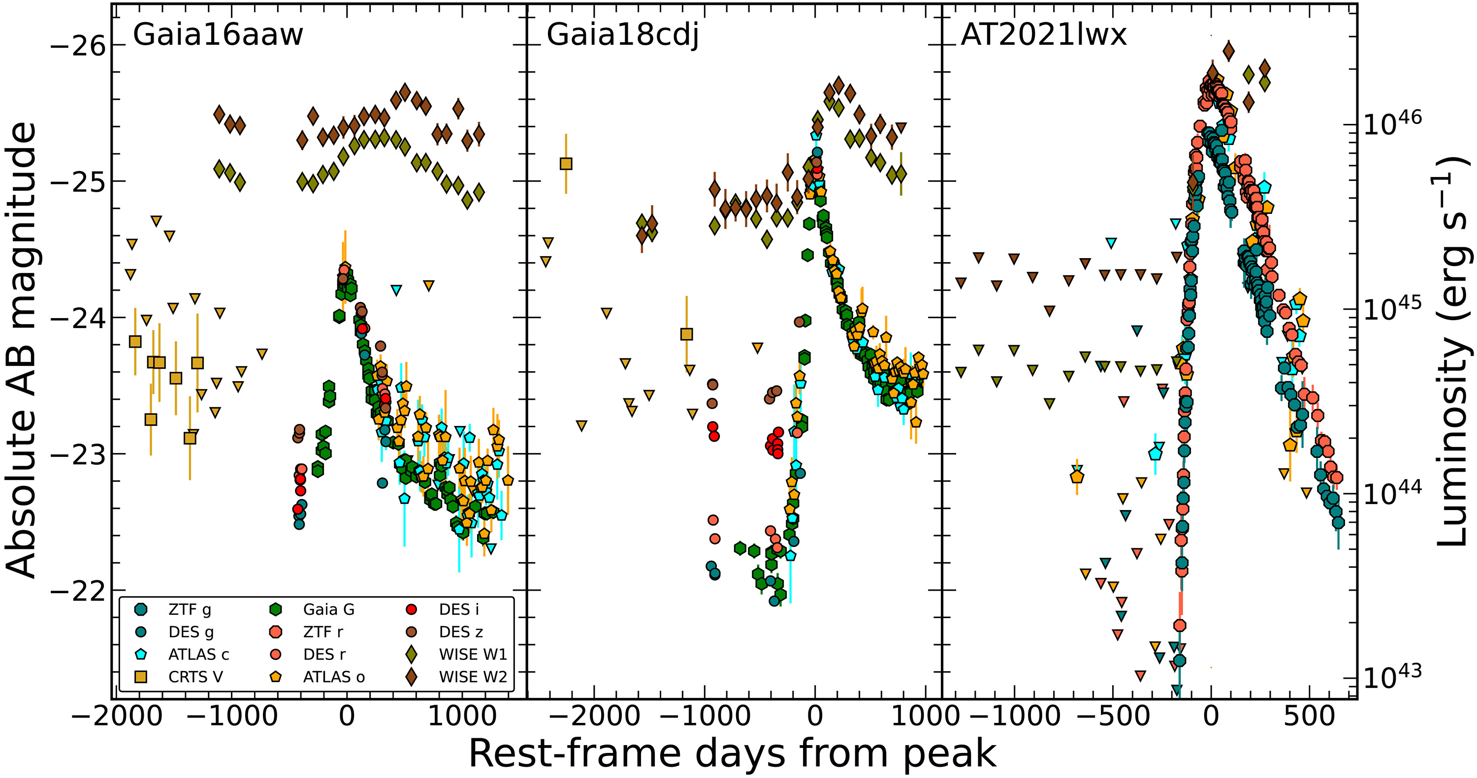 Как же удалось обнаружить этих космических монстров? Всё началось, когда Джейсон Хинкл решил провести систематический обыск… э-э… то есть, поиск в общедоступных данных астрономических обзоров. Его интересовали долгоживущие вспышки, исходящие из центров галактик. И вот, в данных европейской миссии Gaia он наткнулся на две крайне необычные вспышки. Они разгорались гораздо медленнее, чем любые известные транзиенты, и вообще вели себя как-то не так.
