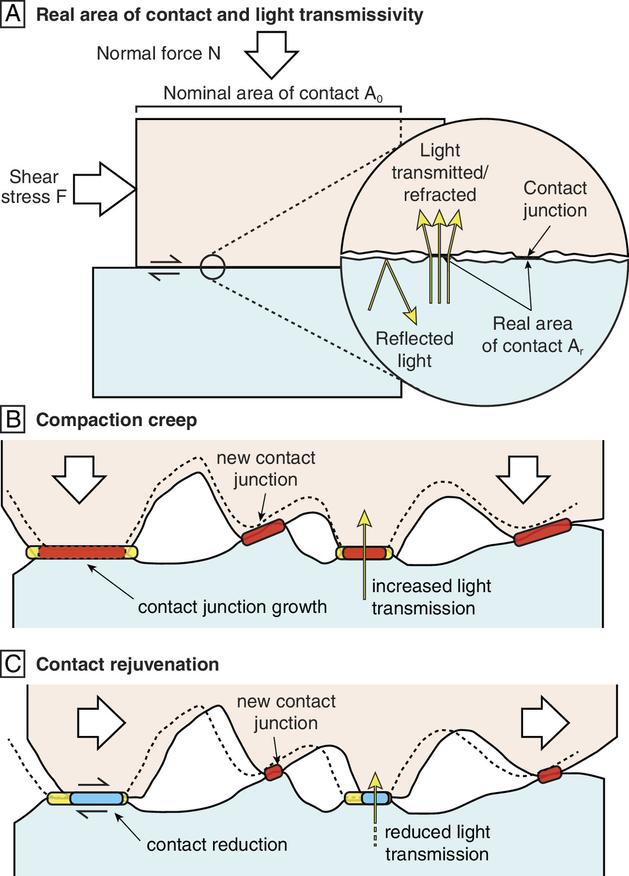Долгое время для описания этого процесса использовались так называемые законы трения «скорость-состояние» (rate-and-state). Если говорить просто, это набор математических правил, которые отлично описывали, что происходит (накопление и сброс напряжения), но не давали ответа на вопрос, почему это происходит именно так. В этих уравнениях была загадочная «переменная состояния» — некий абстрактный параметр, который менялся со временем и отвечал за прочность разлома. Учёные знали, что он важен, но не понимали его физического смысла. Это был классический «чёрный ящик»: мы видим, что на входе и что на выходе, но не знаем, что творится внутри.