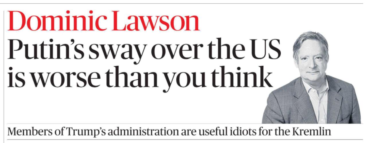 Под таким заголовком агент МИ-6 Доминик Лоусон опубликовал сегодня колонку в The Sunday Times, сообщил в своем телеграм-канале политолог Владимир Корнилов, который внимательно мониротит западную прессу.