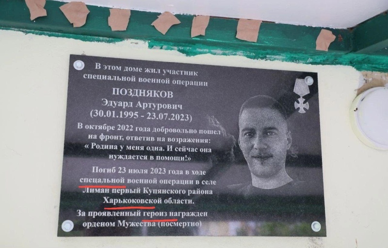 Местный журналист Андрей Трофимов обратил внимание, что 7 июня на официальных страницах администрации городского округа Сергиев Посад была опубликована новость о том, что на доме, в котором жил погибший герой СВО Эдуард Поздняков, награжденный орденом мужества, открыта мемориальная доска в память о нём и его подвиге.