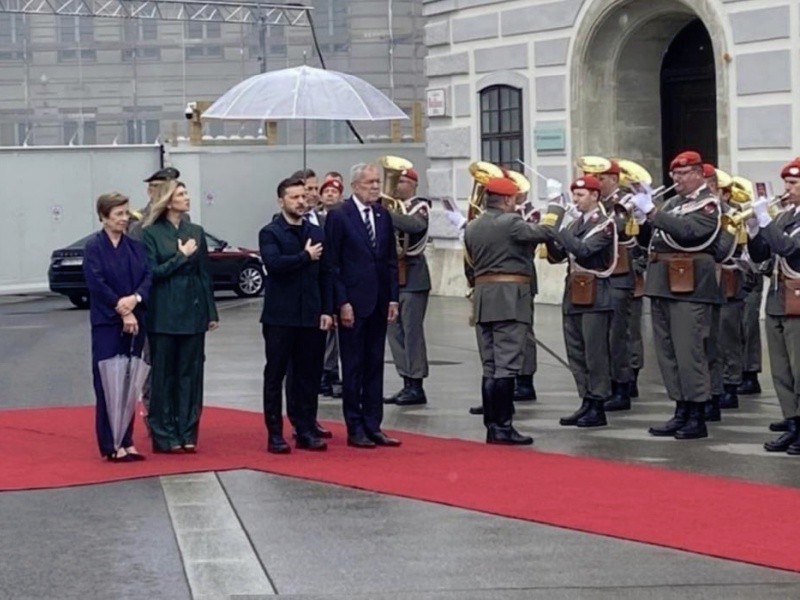 Австрийское издание Heute сообщило, что Владимир Зеленский оставил свою жену Елену мокнуть под дождём во время встречи с президентом Австрии Александром Ван дер Белленом.